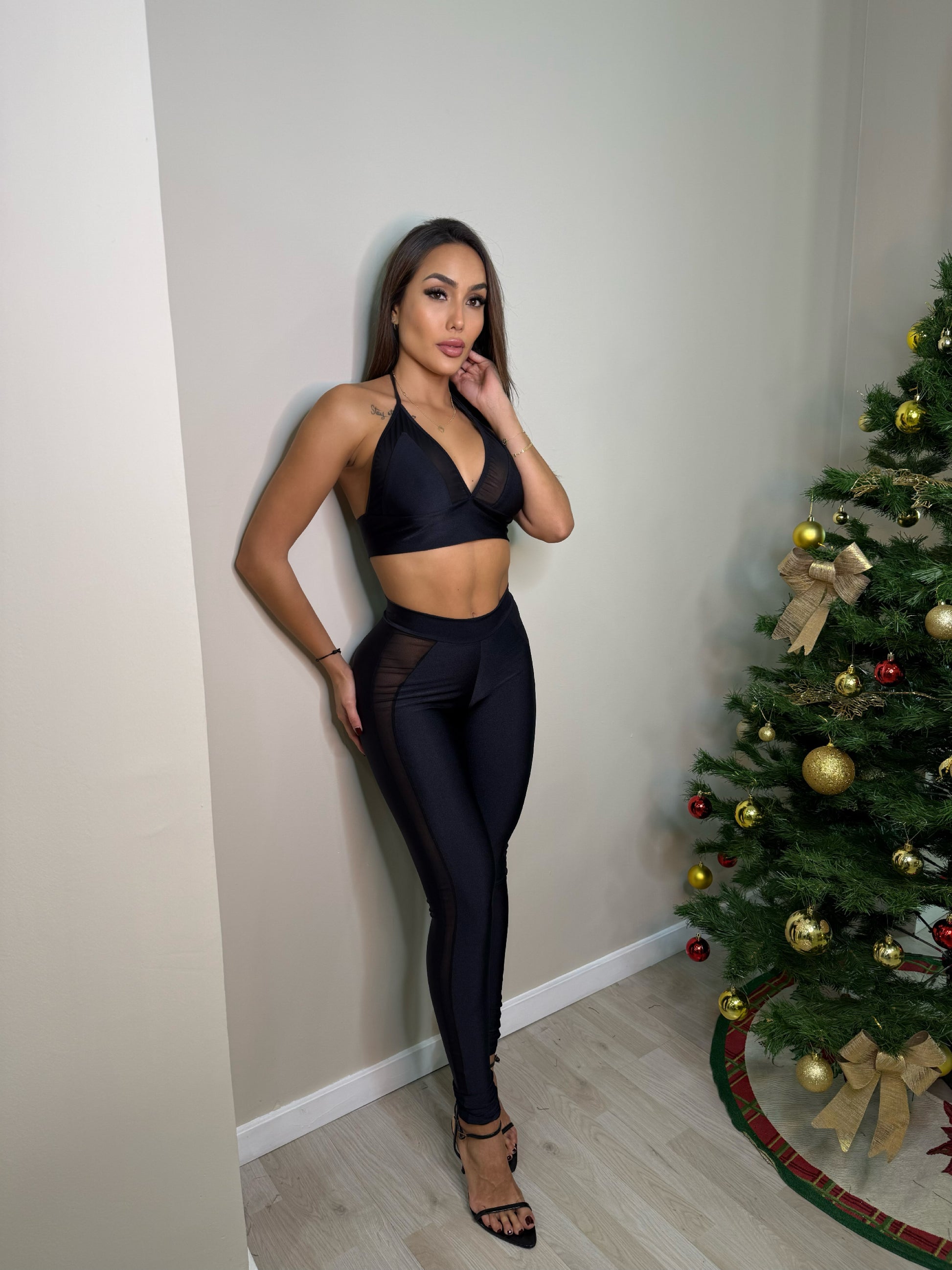 ENSEMBLE TOP ET PANTALON ASYMÉTRIQUE TRANSPARENT
